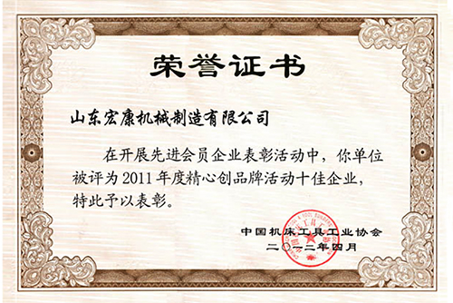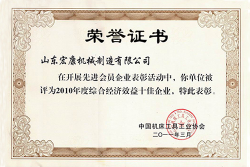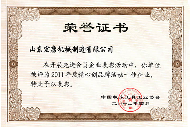 中國(guó)機(jī)床工具工業(yè)協(xié)會(huì)榮譽(yù)證書