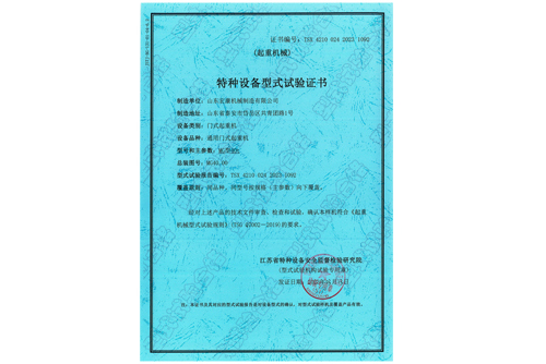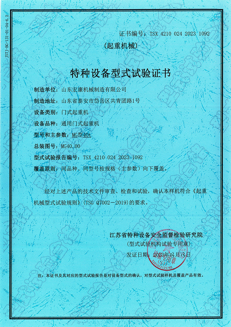 通用門式起重機(jī)型式試驗(yàn)合格證